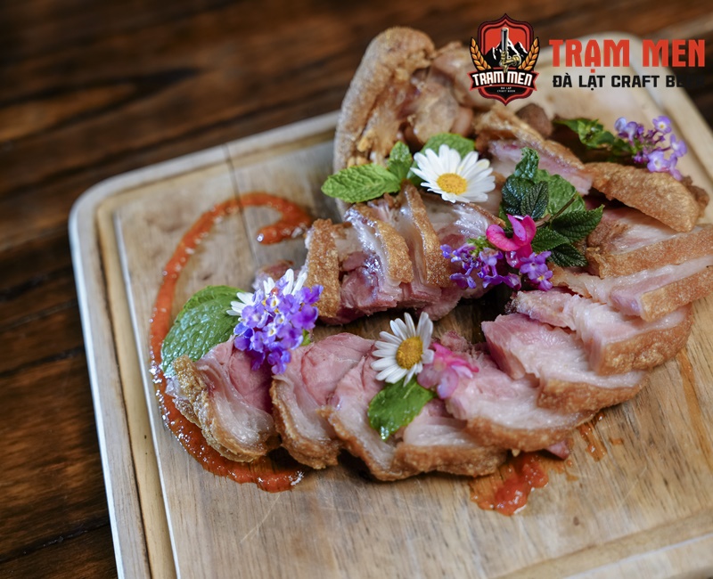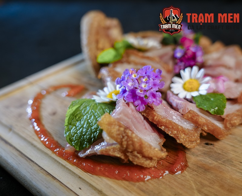 Trong tiết trời se lạnh của Đà Lạt, thưởng thức Giò Heo Muối Chiên Giòn nóng hổi, lớp da giòn tan xen lẫn phần thịt mềm béo chính là trải nghiệm ẩm thực tuyệt vời. Đây là món ăn không chỉ ngon miệng mà còn rất hợp để dùng kèm cùng bia thủ công hoặc rượu vang.